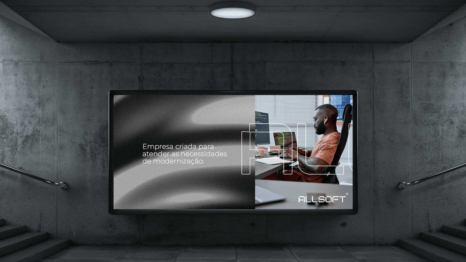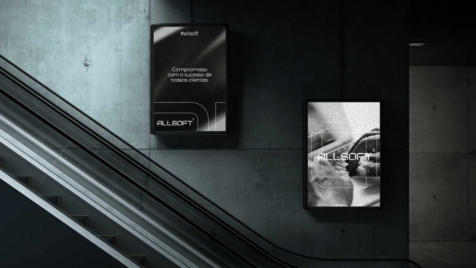 To compose the brand’s visual identity, we used 3 color tones, with great applicability in the technological segment – a monochrome color palette, using White, Gray and Black. The texture is a combination of colors, forming a gradient with different combinations, so that the brand is not repetitive in its real and digital applications.