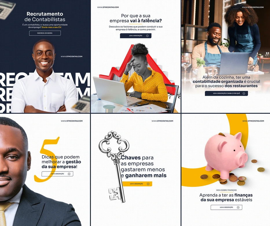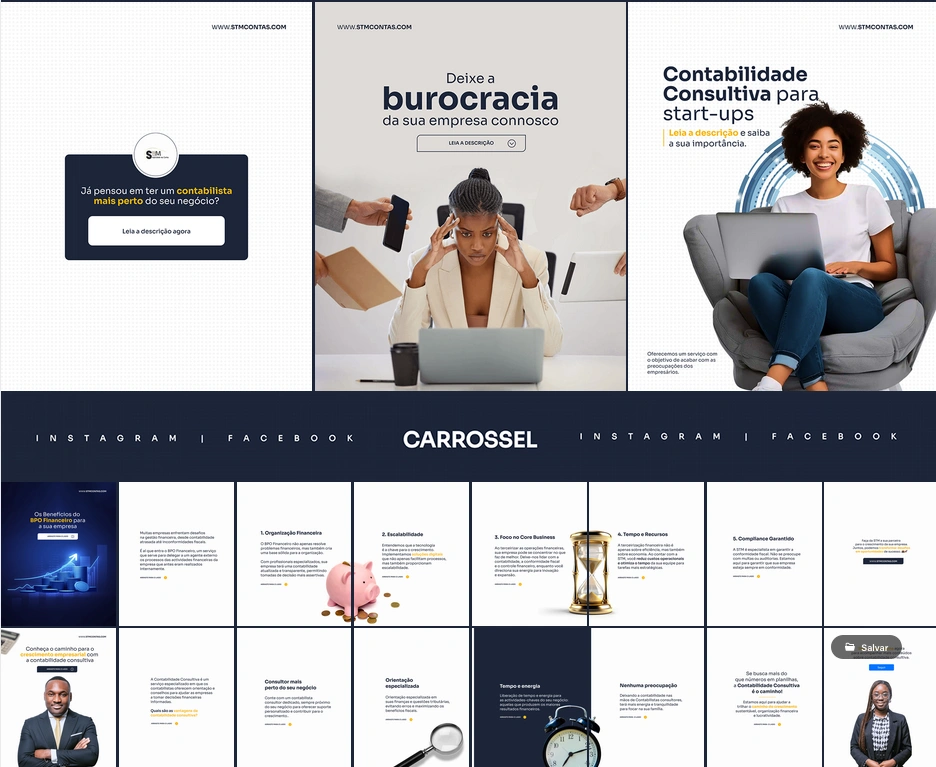 Assumimos as suas redes sociais com estratégia completa: planeamento de conteúdo, criação de artes, copywriting, calendário editorial e relatórios de desempenho. No Facebook, Instagram e LinkedIn.